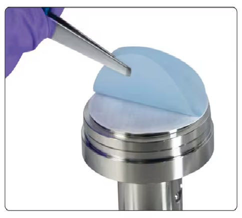 - Montagem: Coloque a membrana com a grade voltada para cima no funil de filtração.