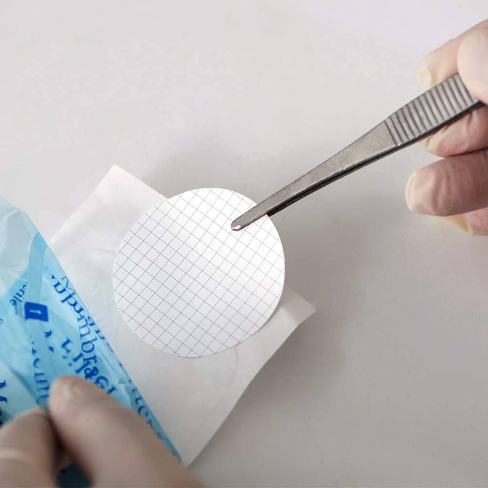 O diferencial dessa membrana é sua superfície: ela é branca e quadriculada (gridded). Essa grade de 3,1 mm x 3,1 mm não é apenas um detalhe estético, ela é funcional. Ela ajuda a guiar a contagem das colônias de forma mais organizada, tornando o processo mais rápido e preciso para o analista.